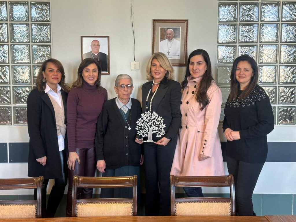 Dagher presented Mother Rohayem with the association’s emblem, featuring the Tree of Life on the Lebanese map, as a token of appreciation for her support and ongoing efforts.
