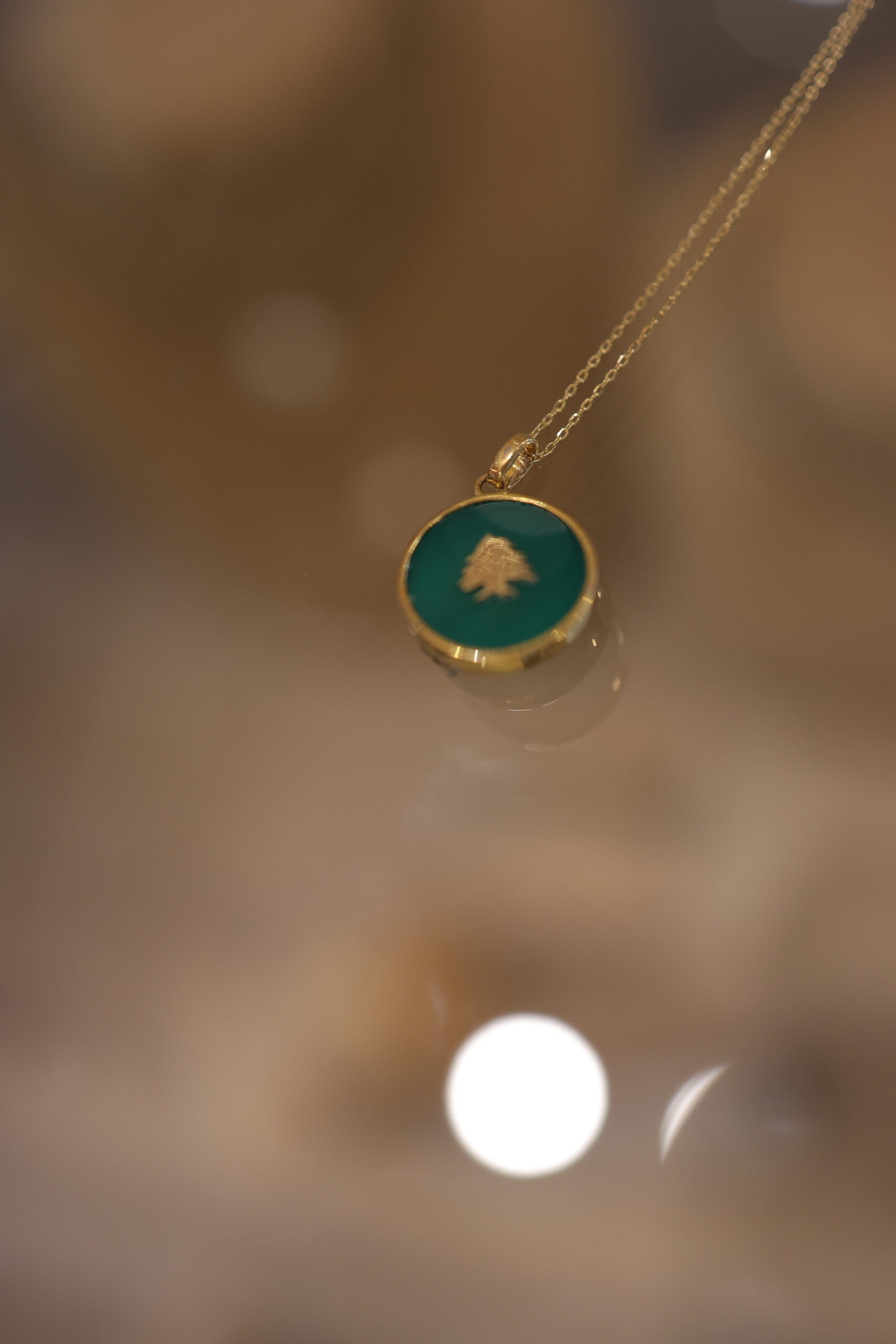 Malakite And Gold Necklace With Malakite Cedar