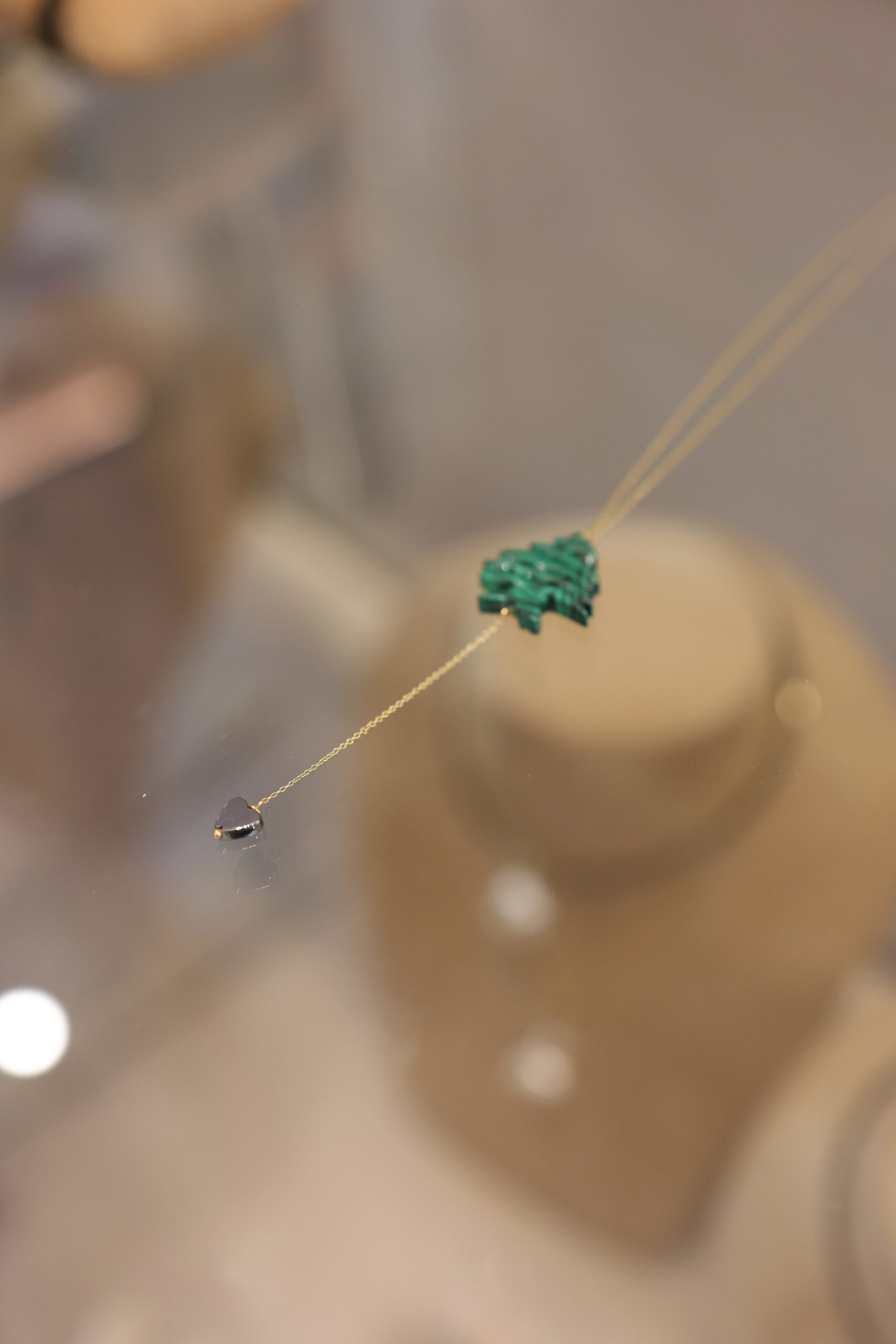 Gold Chain With Malakite Cedar And Hematites Heart