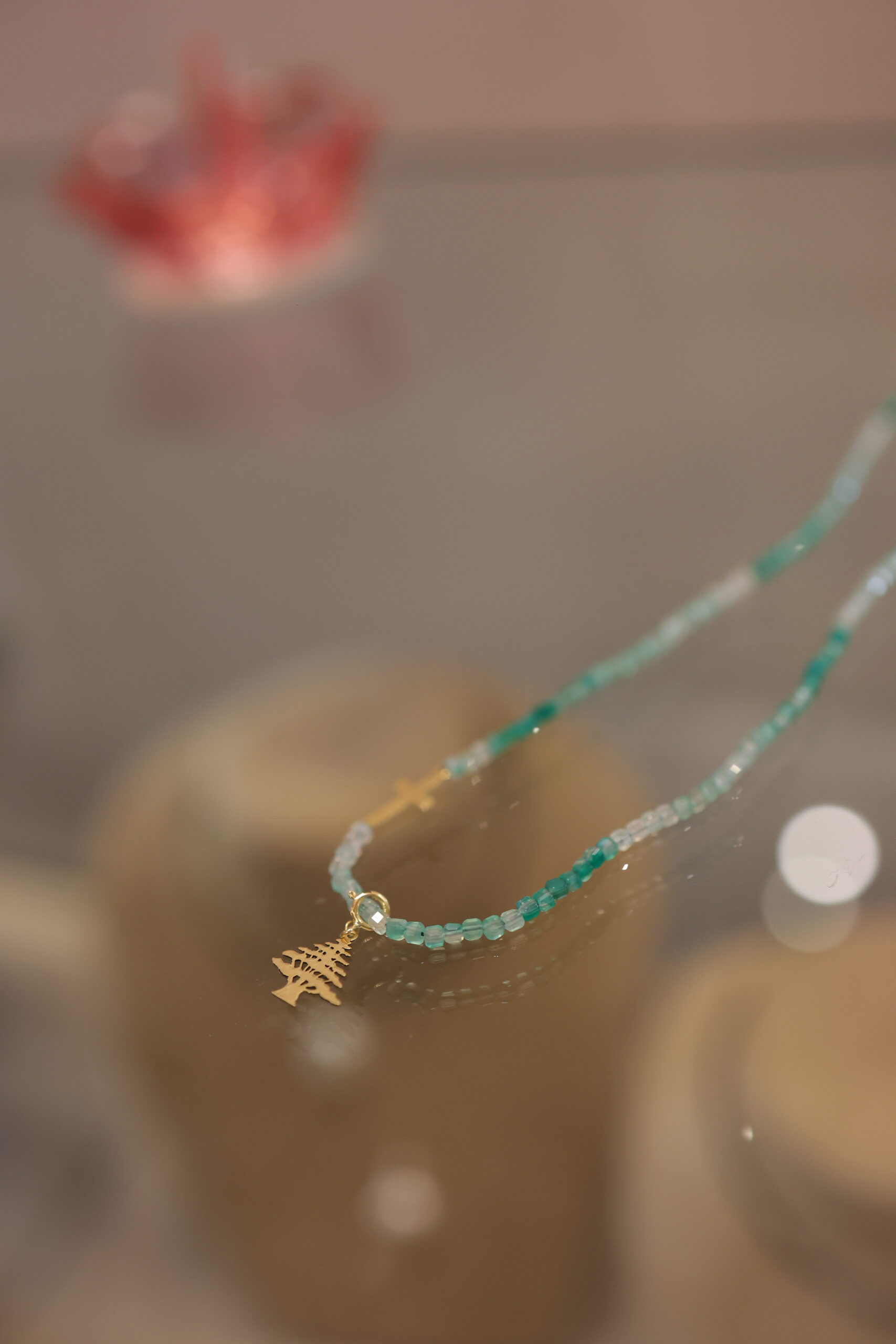 Green Onyx With Gold Cross And Cedar