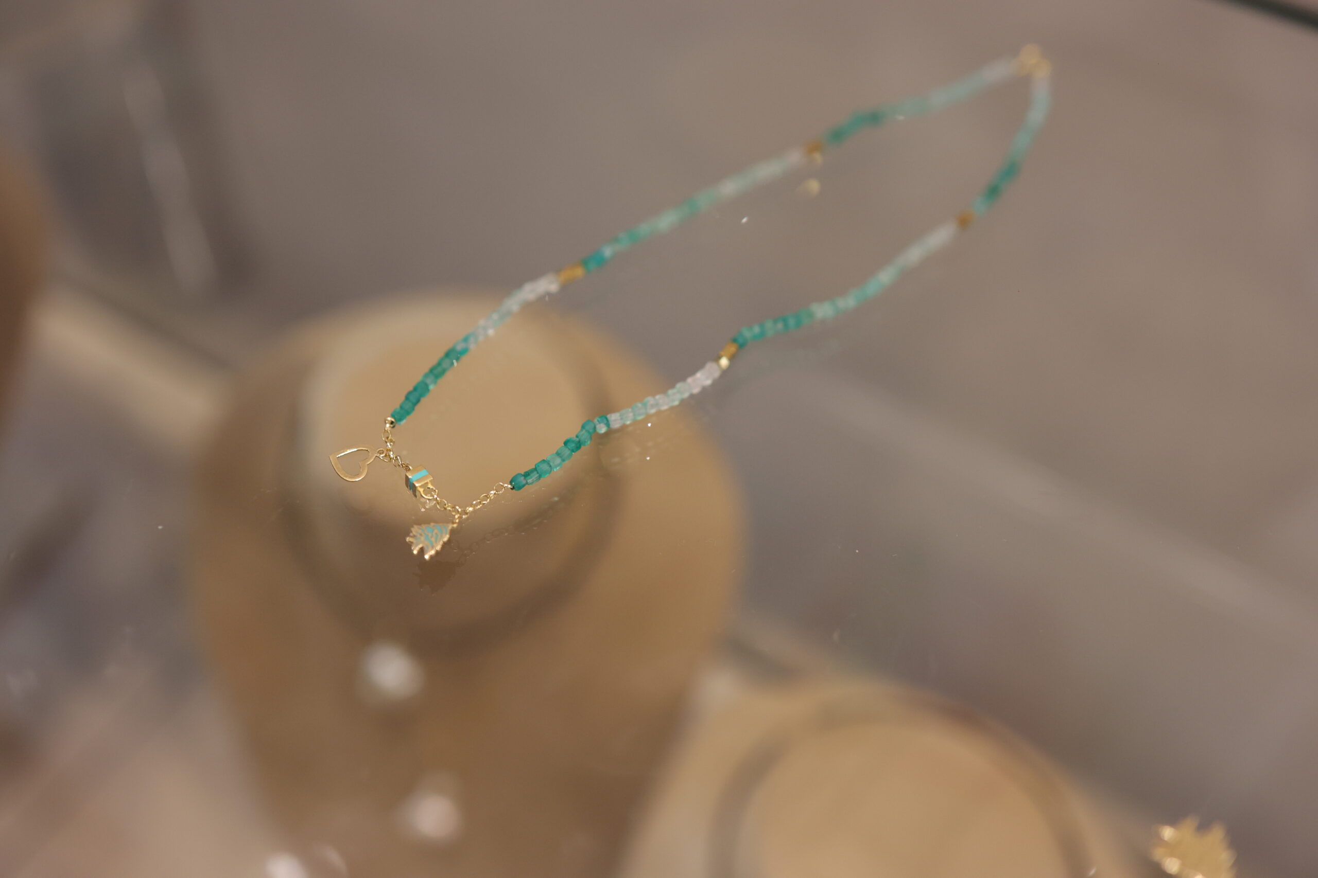 Green Tourmaline Necklace With 3 Small Motif (Cedar, Heart And Boule) quantity